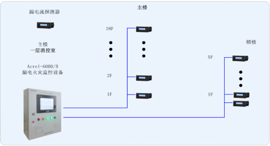 新食堂為地上三層、地下一層,占地面積約為2100平方米,地上建筑面積約為6300平方米。我司承接其電氣火災(zāi)系統(tǒng)的搭建,對安裝于食堂樓層配電箱進(jìn)線處的ARCM200系列剩余電流火災(zāi)探測器設(shè)計一套Acrel-6000/B電氣火災(zāi)系統(tǒng),由此來實時監(jiān)測樓層內(nèi)重要回路的漏電流,以確保變電所配電系統(tǒng)的電氣安全。