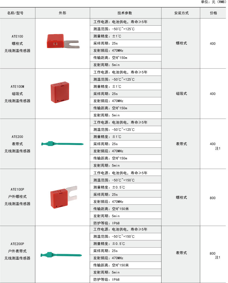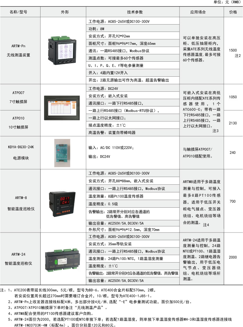 綜上所述,確定型號(hào)為:無線測(cè)溫裝置:ARTM-P9-300,1臺(tái);無線測(cè)溫傳感器:ATE300,9個(gè)