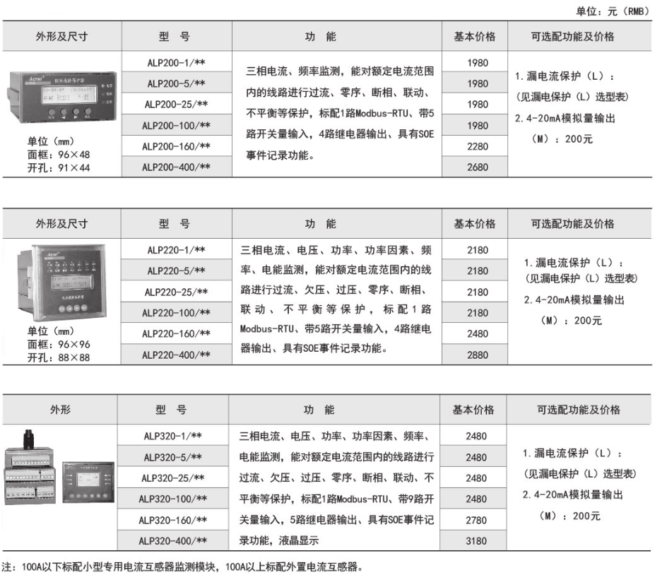 技術(shù)要求:輸入電壓AC 220V;工作頻率50Hz;電流變比200A/5A;漏電保護(hù)KB2模塊;準(zhǔn)確級0.5。