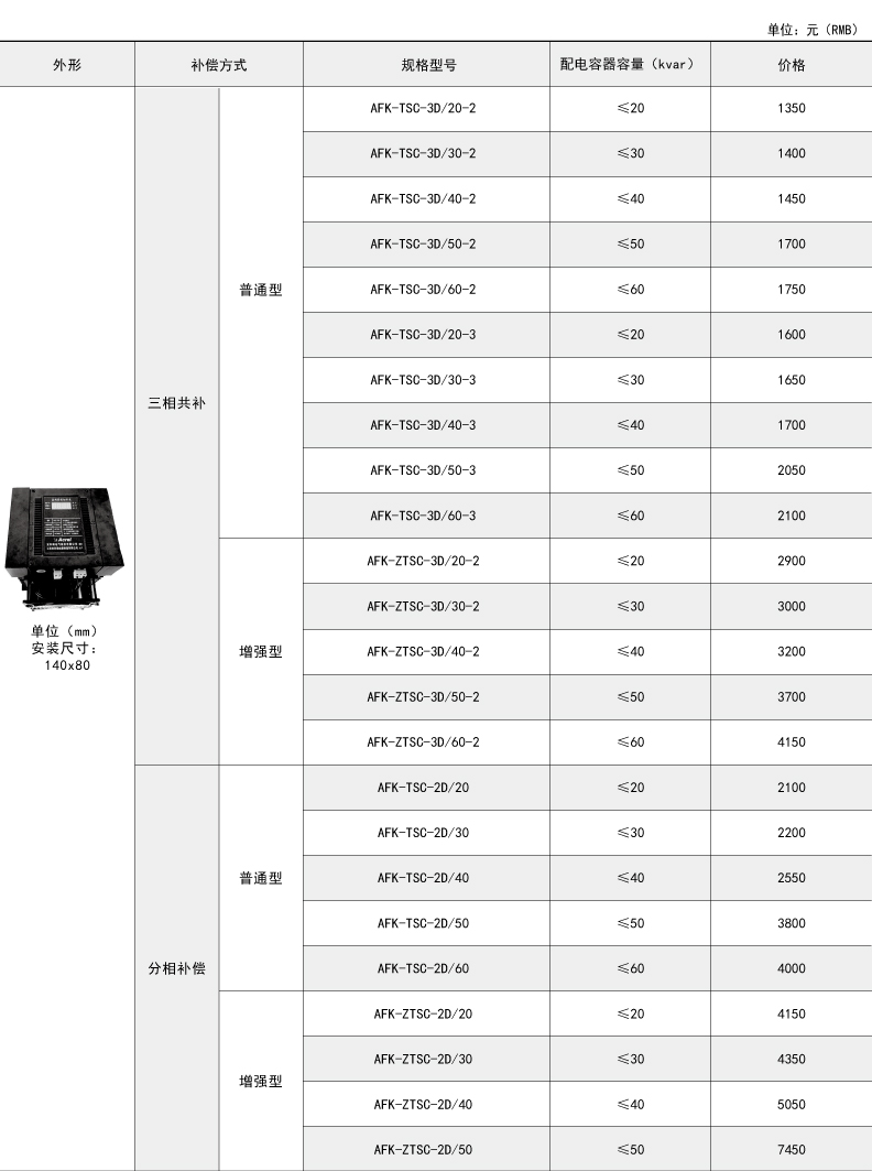 具體型號(hào):AFK-TSC-3D/50-2,三相共補(bǔ),普通型