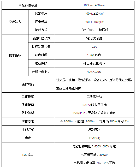 技術參數(shù):無功補償分補容量100kvar,共補容量50kvar