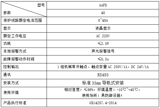 技術(shù)要求:故障電弧報警,AC 40A以下的負載