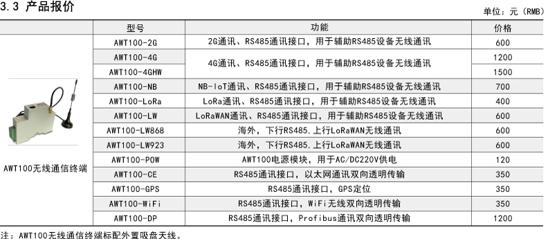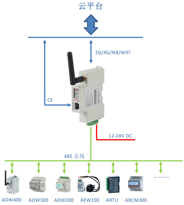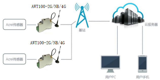 注:①AWT100-2G/NB/4G無線通信終端能通過安科瑞平臺協(xié)議與安科瑞服務(wù)器通訊。