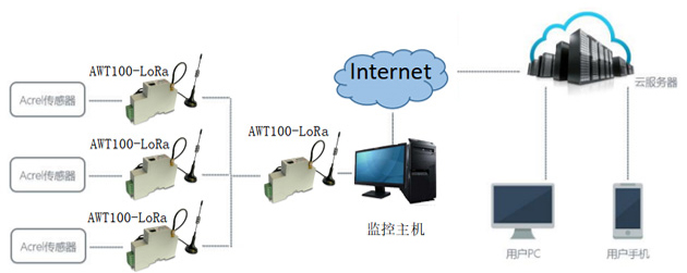 ■ AWT100-LW無線通信終端可通過LoRa通訊將數(shù)據(jù)上傳至服務(wù)器。