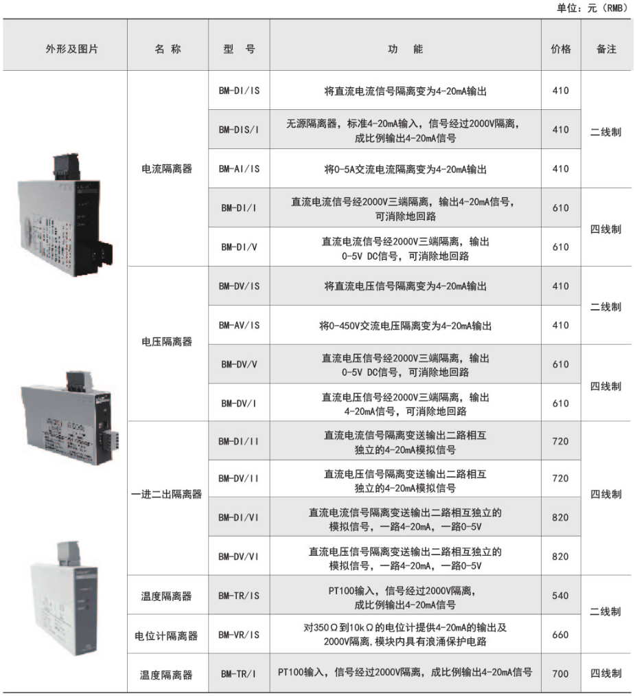 BM系列模擬信號隔離器可以對電流、電壓等電量參數(shù)或溫度、電阻等非電量參數(shù)進(jìn)行高速精確測量,經(jīng)隔離轉(zhuǎn)換成標(biāo)準(zhǔn)的模擬信號輸出。既可直接與指針表、數(shù)顯表相接,也可以與自控儀表(如PLC)、各種A/D轉(zhuǎn)換器以...
