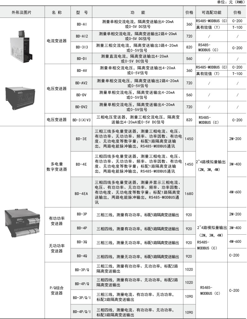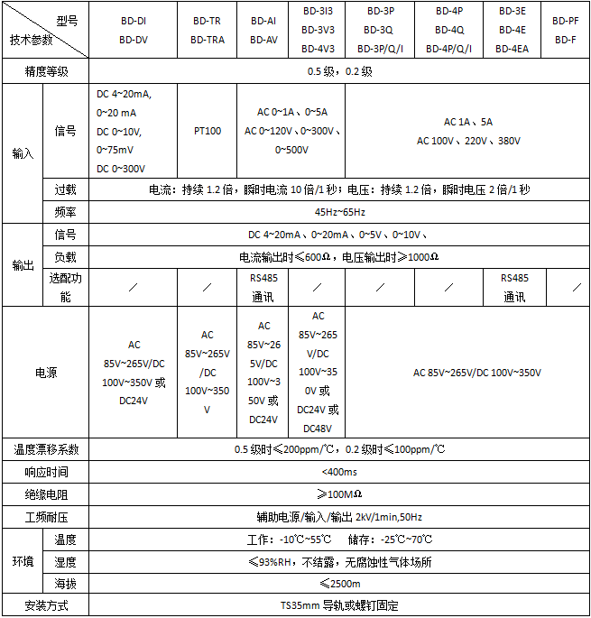 BD系列電力變送器是一種將電網(wǎng)中的電流、電壓、頻率、功率、功率因數(shù)等電參量,經(jīng)隔離變送成線性的直流模擬信號(hào)或數(shù)字信號(hào)的裝置。電力系統(tǒng)具體型號(hào):BD-AI技術(shù)要求:輸入AC 0-5A;輸出DC 4-20...