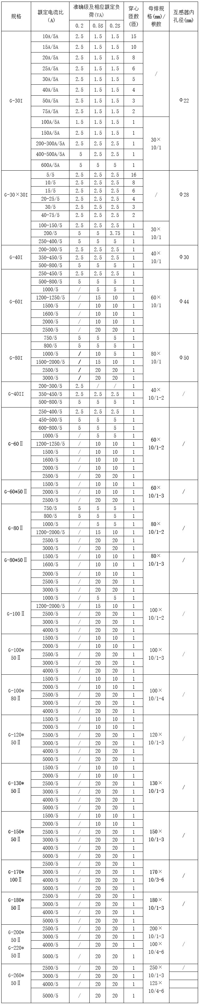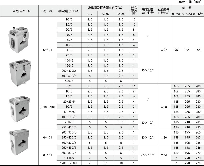 技術要求:額定電流比400A/5A;準確級0.2級;額定負荷2.5VA;穿心匝數1匝;內孔徑φ30;母排規格40mmx10mm 1根。