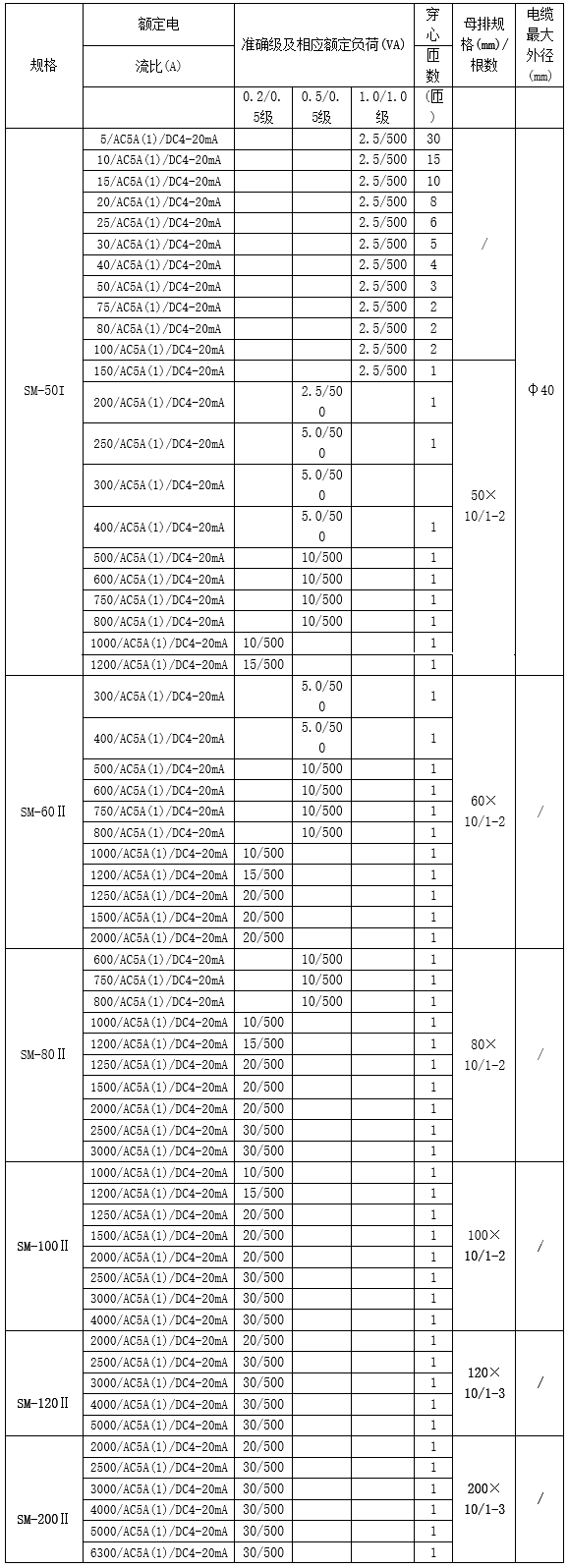 技術要求:額定電流比100A/AC5A,AC5A/DC4-20mA模擬量;準確級1.0級、1.0級;額定負荷2.5VA、0.02VA;穿心匝數2匝;內孔徑φ40mm。