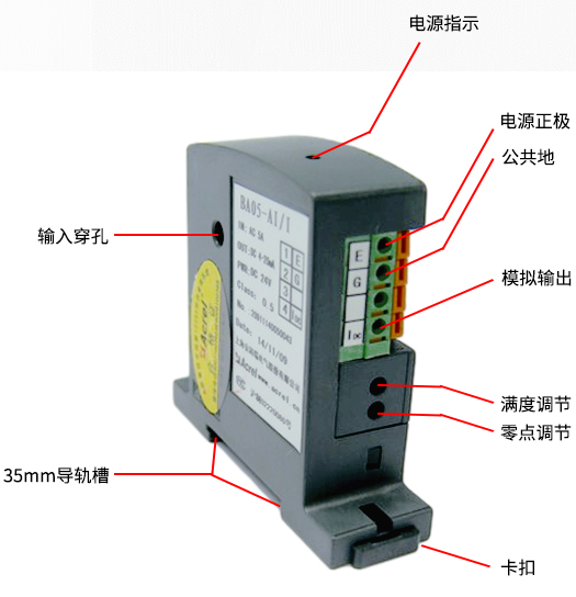 技術(shù)要求:輸入電流AC 0-50A;輸出DC 4-20mA;穿孔φ10mm;準(zhǔn)確級(jí)0.5。
