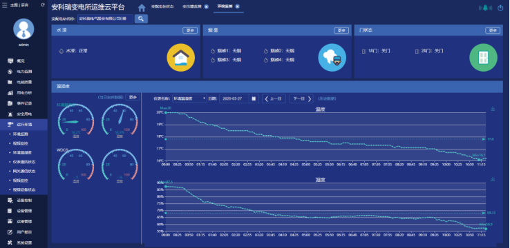 實時監(jiān)測變電所的運行環(huán)境,包括環(huán)境溫濕度、水浸、門磁、煙感、線纜溫度等,并可實現(xiàn)視頻監(jiān)視和錄像回放;