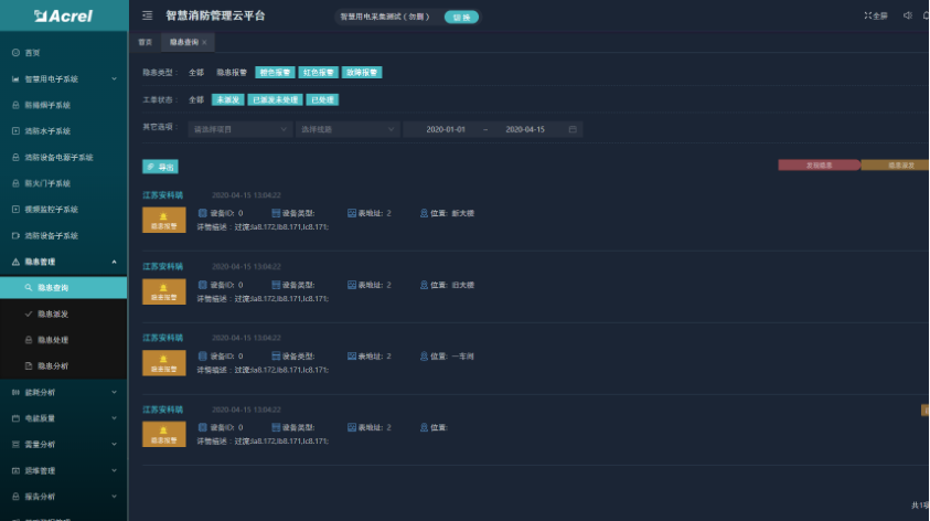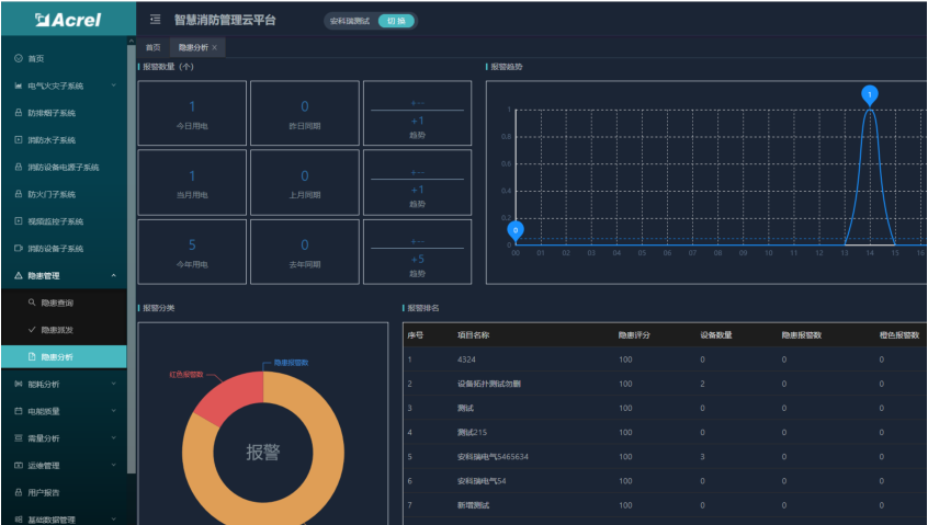 安科瑞智慧消防綜合管理云平臺基于物聯(lián)網(wǎng)、大數(shù)據(jù)、云計算等現(xiàn)代信息技術(shù),將分散的火災(zāi)自動報警設(shè)備、電氣火災(zāi)監(jiān)控設(shè)備、智慧煙感探測器、智慧消防用水等設(shè)備連接形成網(wǎng)絡(luò),并對這些設(shè)備的狀態(tài)進行智能化感知、識別、定位,實時動態(tài)采集消防信息,通過云平臺進行數(shù)據(jù)分析、挖掘和趨勢分析,幫助實現(xiàn)科學(xué)預(yù)警火災(zāi)、網(wǎng)格化管理、落實多元責任監(jiān)管等目標。填補了原先針對“九小場所”和危化品生產(chǎn)企業(yè)無法有效監(jiān)控的空白,適應(yīng)于所有公建和民建,實現(xiàn)了無人化值守智慧消防,實現(xiàn)智慧消防“自動化”、“智能化”、“系統(tǒng)化”、用電管理“精細化”的實際需求。