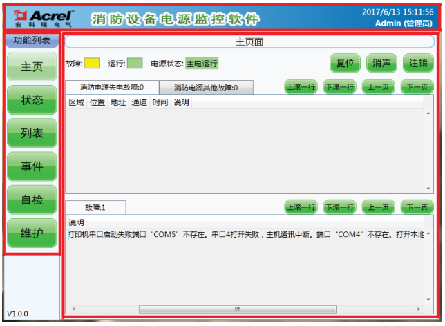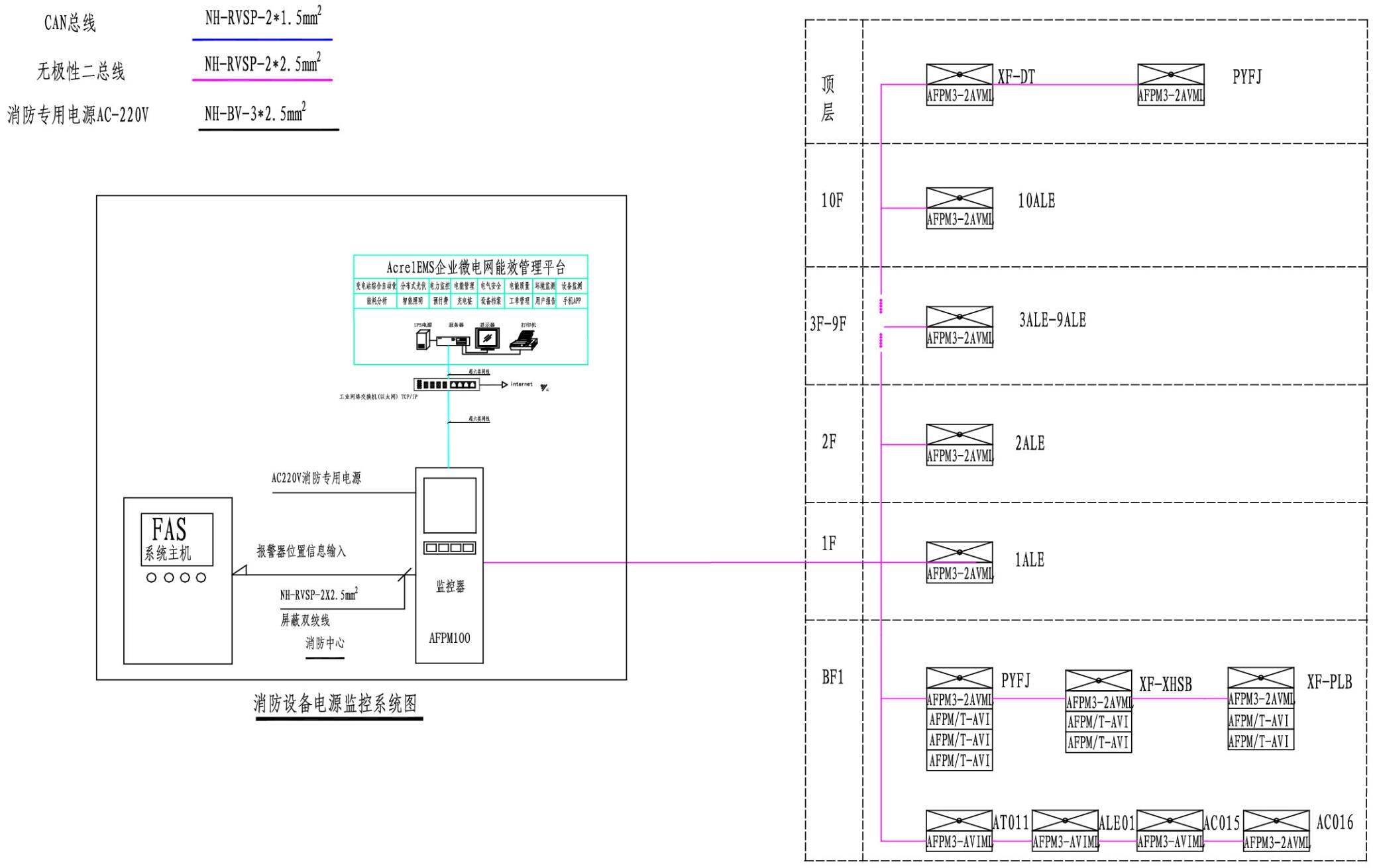 AFPM系列消防設備電源監控系統是依據國家標準《消防設備電源監控系統》而設計,針對消防設備的電源進行實時監測的系統。通過檢測消防設備電源的電流值、電壓值和開關狀態等狀態,判斷電源是否存在斷路、短路、過壓、欠壓、過流以及缺相、錯相、過載等狀態并進行報警和記錄。此監控系統具有可靠性、實時性并具有數字化、智能化、網絡化、自動化和連續監控的特性,實時反應出被監控設備電源的狀況,并集中顯示,從而可有效避免火災發生時,消防設備由于電源故障而無法正常工作的危急情況,大限度地保障消防聯動系統的可靠性。并根據用戶的需求,還可以滿足與AcrelEMS企業微電網管理云平臺或電氣火災自動報警系統等進行數據交換和共享。