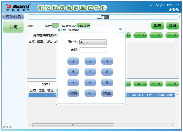 選擇用戶名并輸入正確的密碼后,系統狀態欄會顯示當前的登錄用戶。本軟件針對的任意遠控操作均需權限登錄后方可操作,即防止無關人員誤操作。
